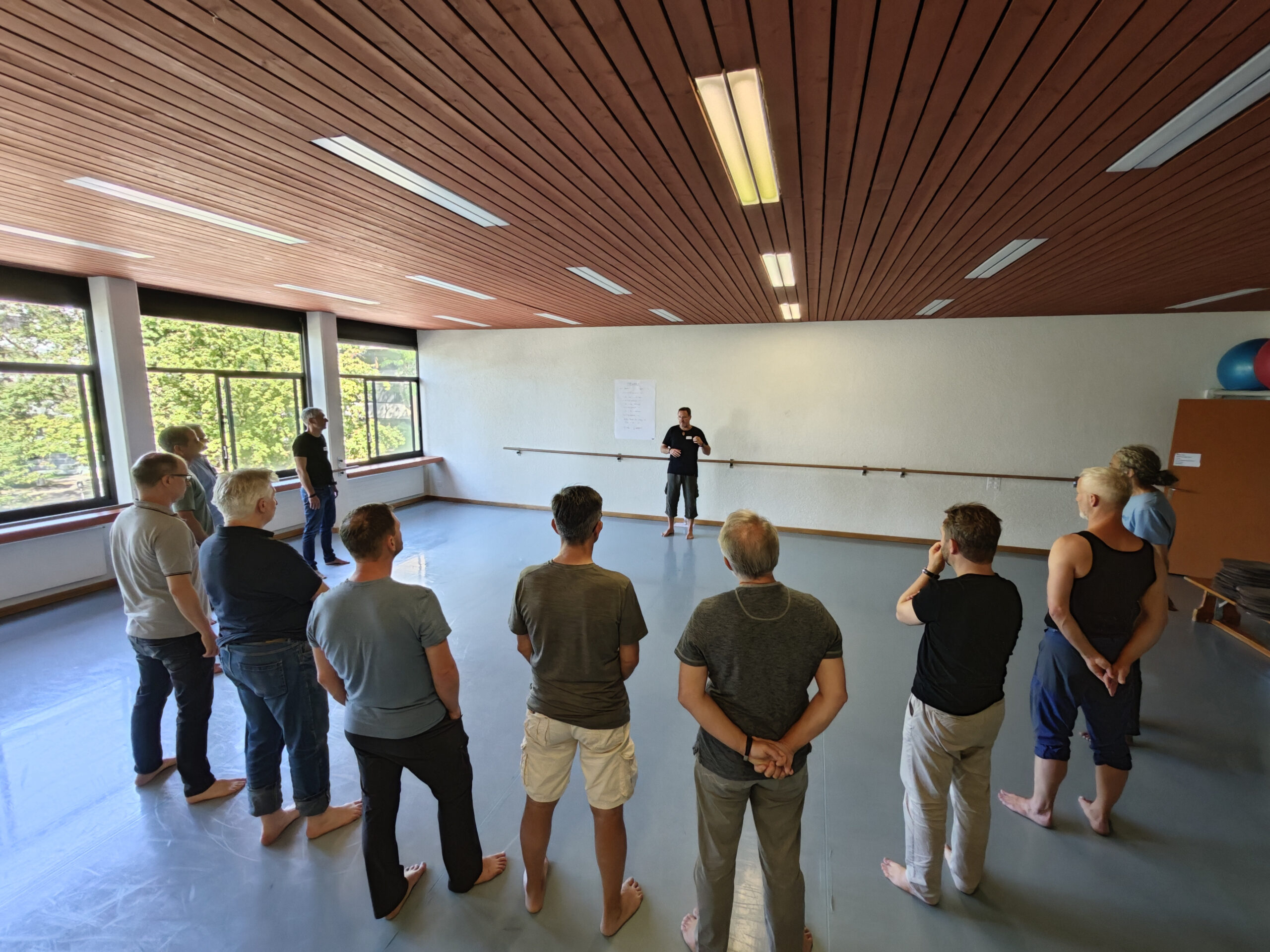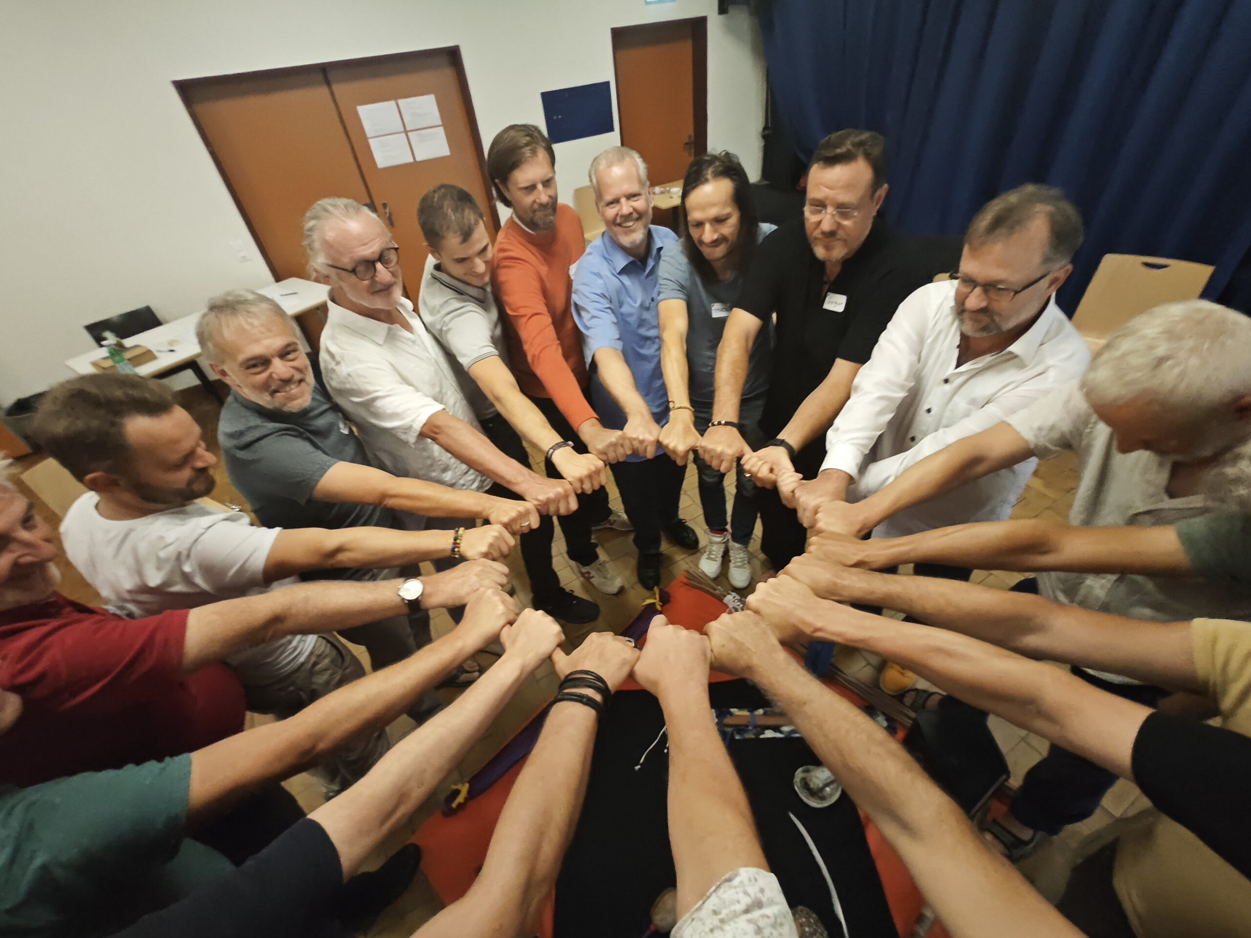 Aktive Meditationen und intensive Workshops lockerten den Rahmen des Symposiums auf und brachten uns auch ins körperliche Erleben. Denn was wäre ein Männersymposium ohne Einbezug unseres wichtigsten „Gedächtnisses“, dem Körper selbst. Gregor Schlitt brachte die Teilnehmer durch den traditionell angeleiteten Krafttanz (inspiriert vom HAKA, ritueller Tanz der Māori) ganz in ihre männliche Kraft und gemeinsam stärkten wir unsere wichtigen Wurzeln.