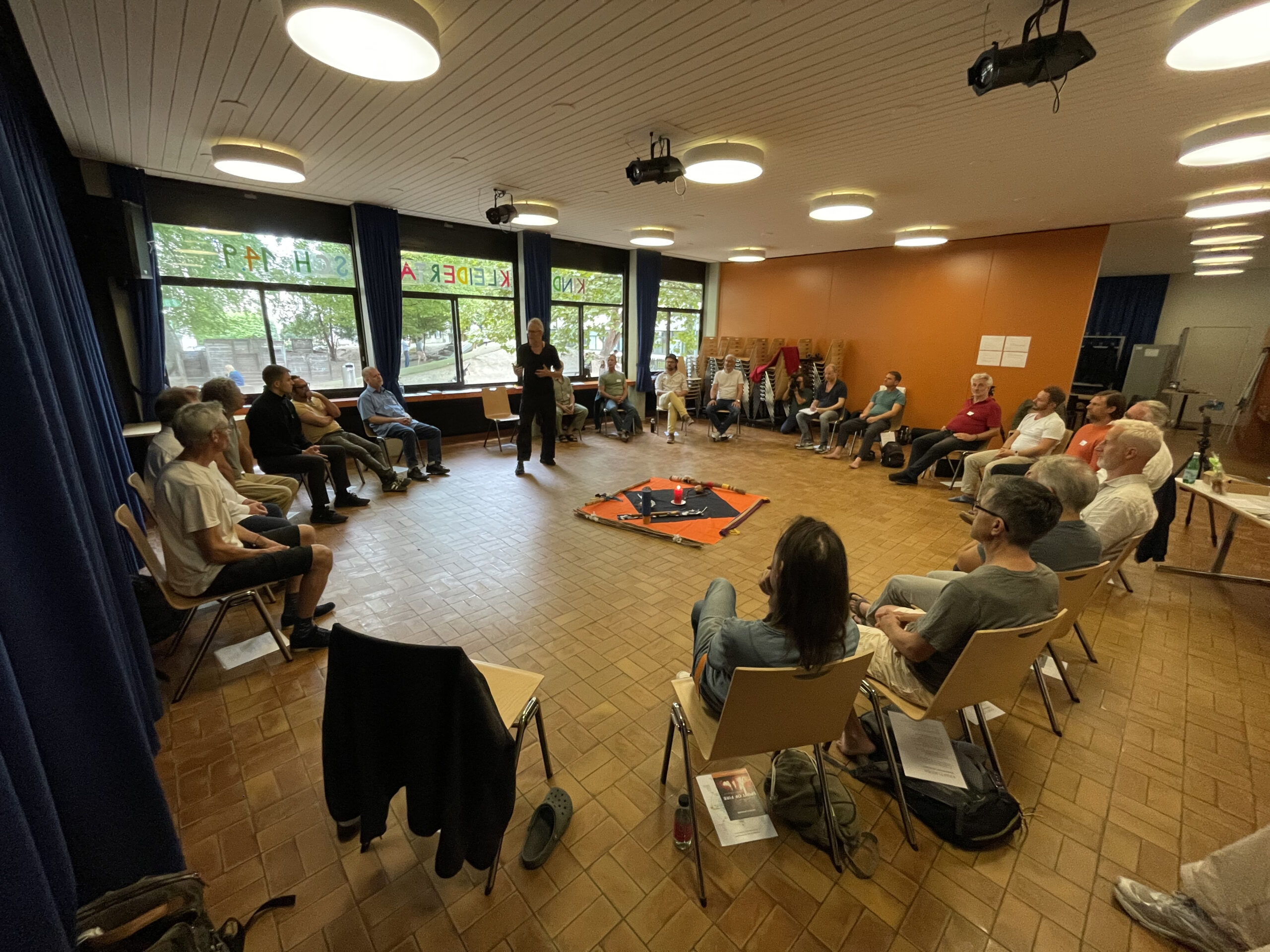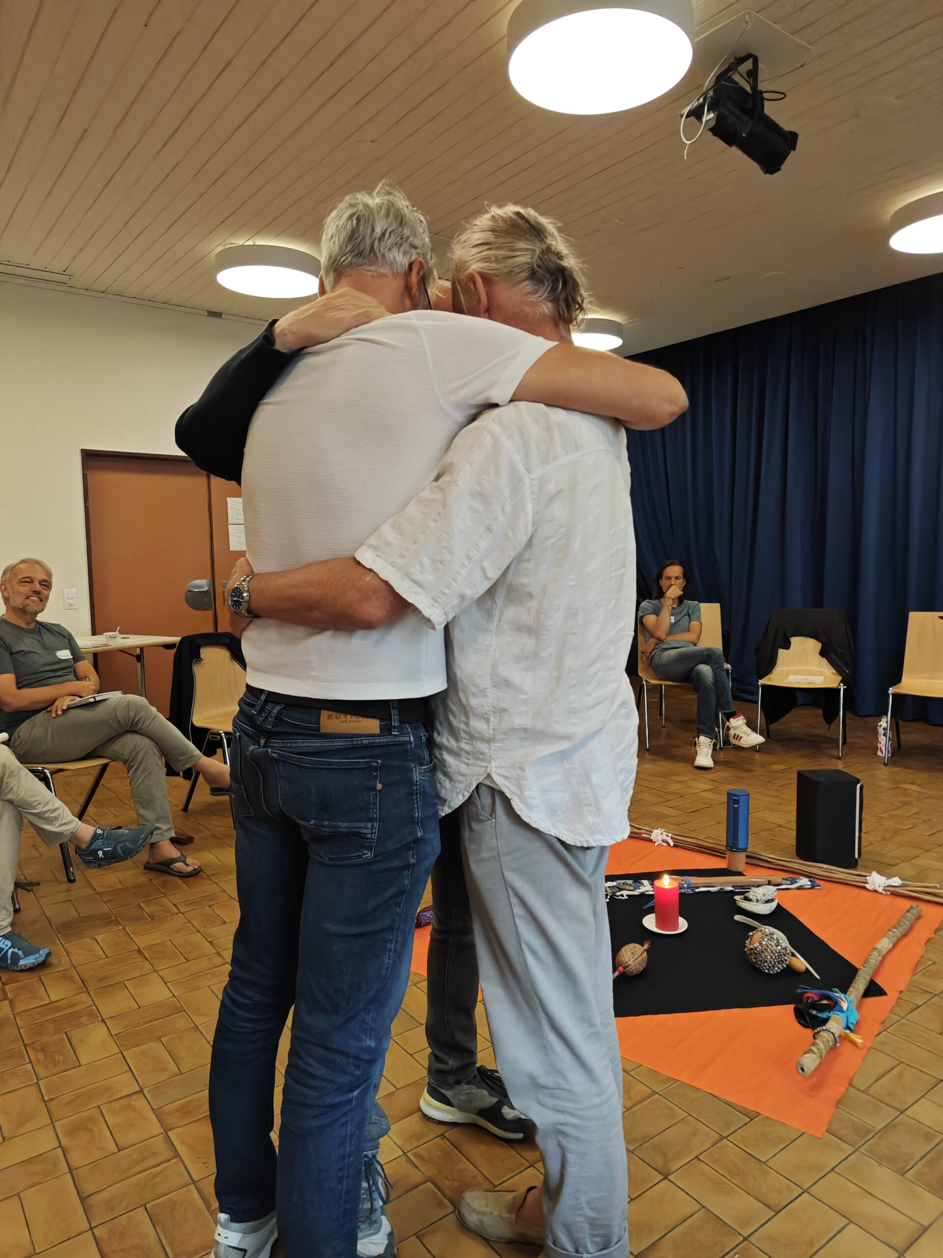 Um dieses herausfordernde Unterfangen gut vorzubereiten, beleuchteten Referenten wie Markus Theunert, Autor des aktuellen Buches „Jungs, wir schaffen das“, die Folgen des Patriarchats und zeigte uns Männern auch unsere versteckten Privilegien auf. Mathias Forster zeigte uns die Konsequenzen für unsere Ökologie auf, aber auch Ansätze, wie wir es besser hinbekommen. Sein Bild der Metamorphose der Raupe zum Schmetterling war berührend und fesselte den Teilnehmerkreis. Zum Mann-Sein gehört zwingend auch physische und psychische Selbstfürsorge und Salutogenese, dies wurde von Dr. med. Dietmar Betz, Androloge und Humanmediziner, beleuchtet. Bernhard von Bresinski, Sozialanthropologe, Körperpsychotherapeut und Pionier für rituelle Männerarbeit, erläuterte das Befreiungspotential von ritueller Männer-Initiation und zeigte neue Perspektiven für emanzipative Männerarbeit auf.